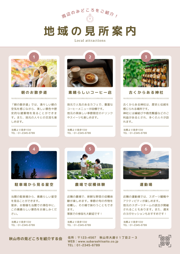 2作品タイトル「地域の見所案内」観光スポット紹介チラシ