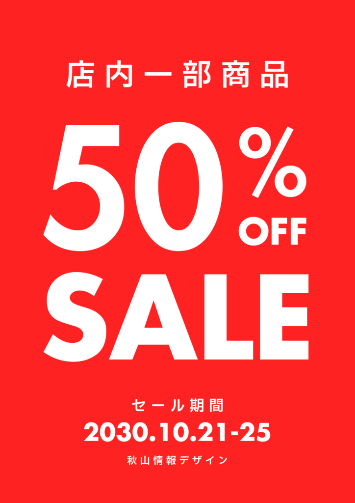 2作品タイトル「店内一部商品50%OFF」セール告知ポスター