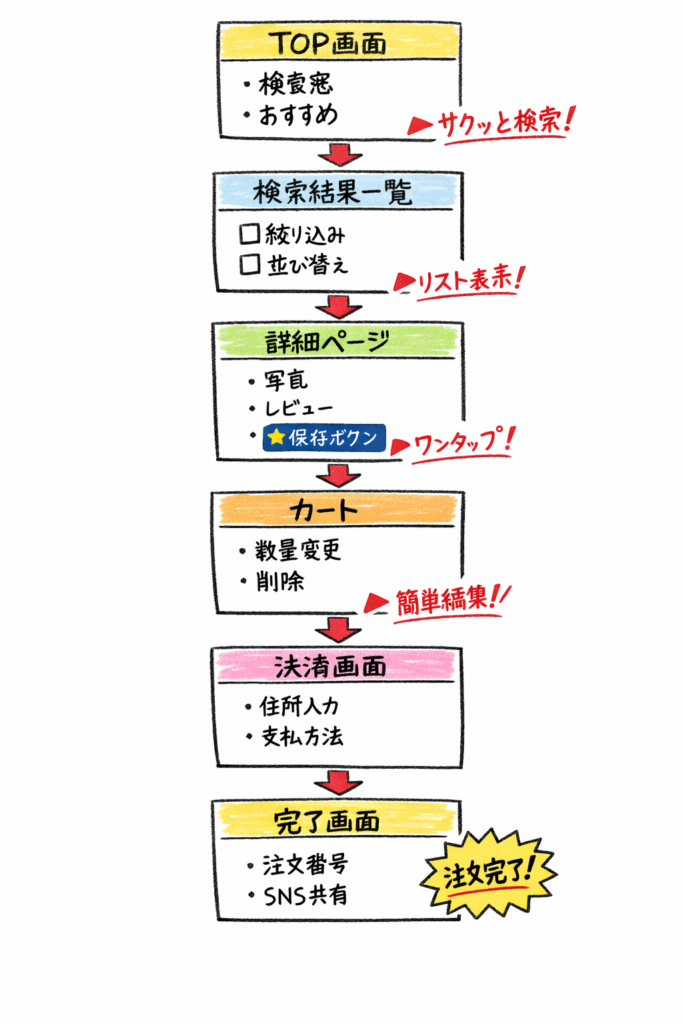 6制作プロセス課題抽出、ユーザー仮説設定、機能整理、UX設計、簡易スケッチ制作、フィードバック反映という反復型プロセスで構築。
