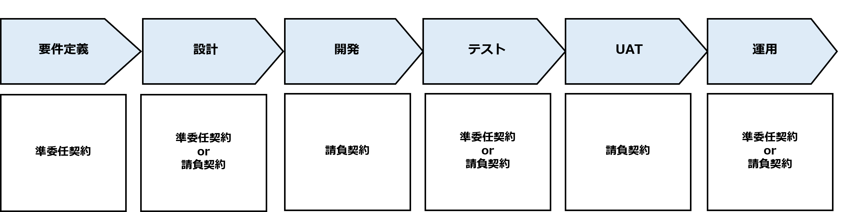 | 契約形態 | ①請負契約(外部設計、内部設計、プログラミング) ②準委任契約(テスト、保守/運用) | |